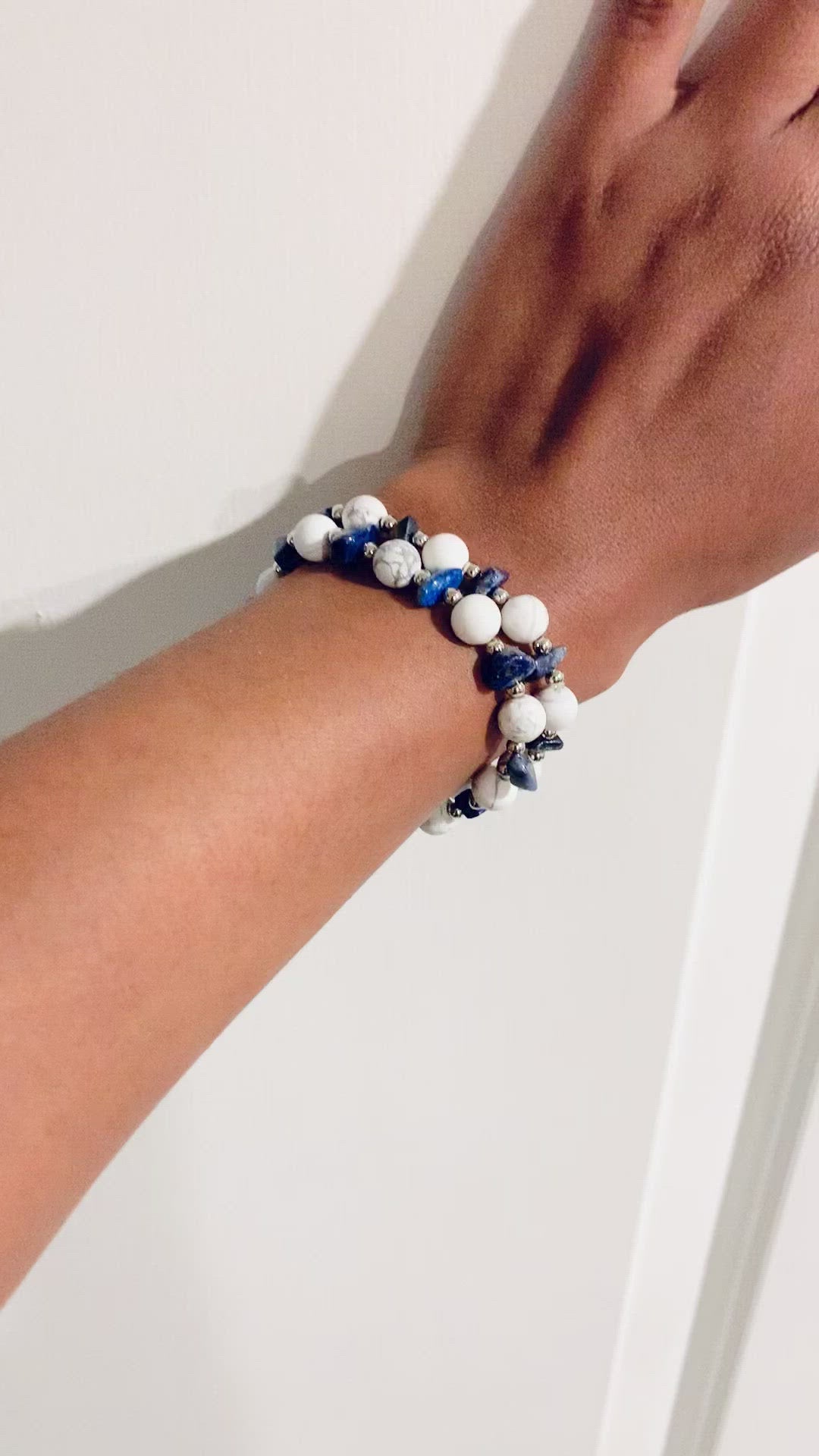 These gorgeous white Howlite beaded bracelets can be worn separately or together.